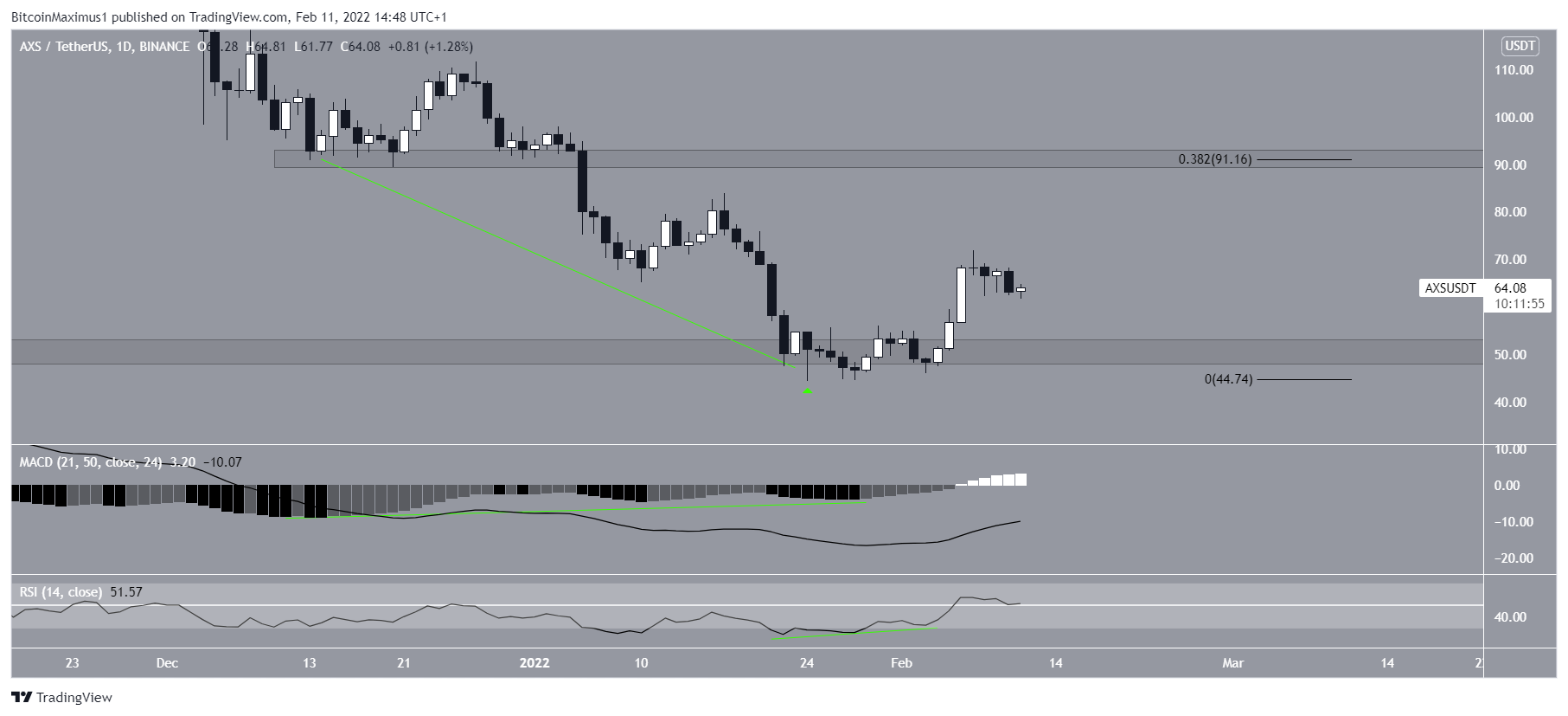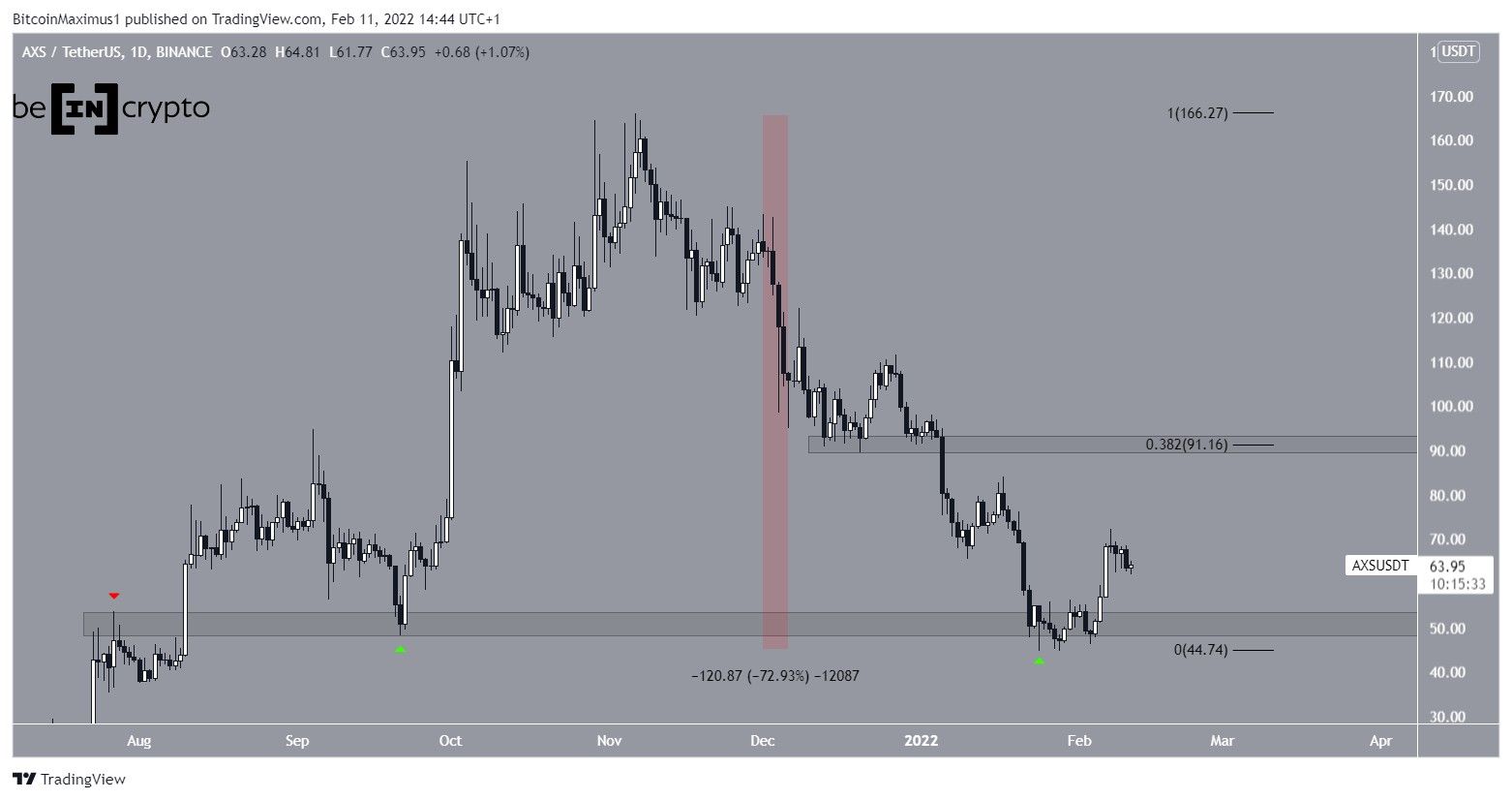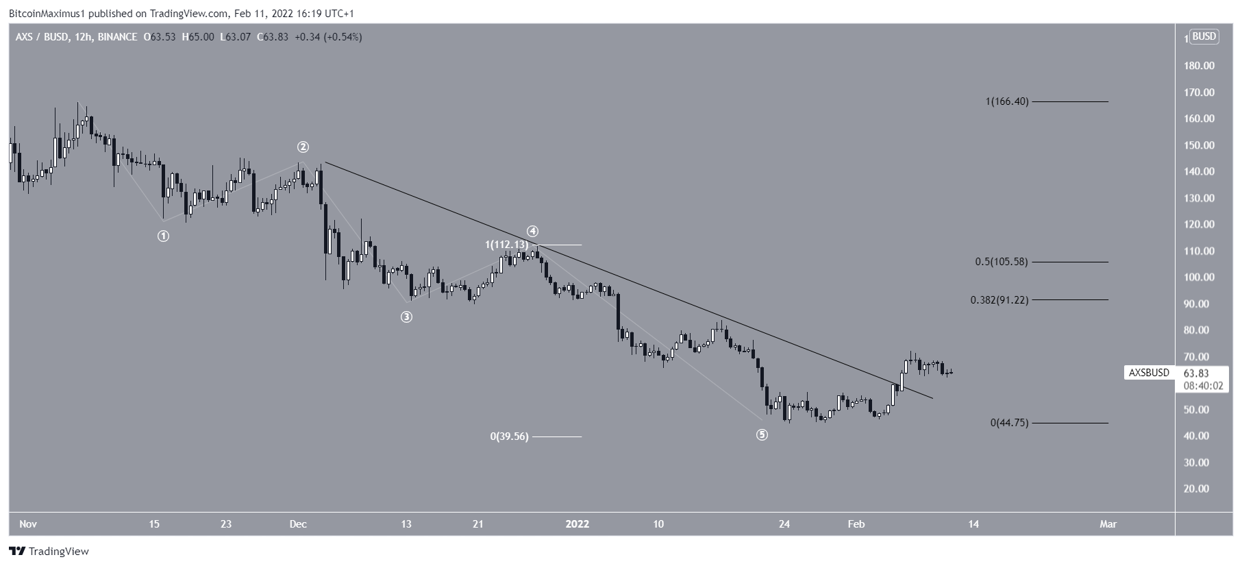 AXS has been falling since Nov. 6, when it reached an all-time high price of $166. The downward movement continued until a low of $44.42 was reached on Jan. 24. Measuring from the all-time high, this amounted to a decrease of 73%.