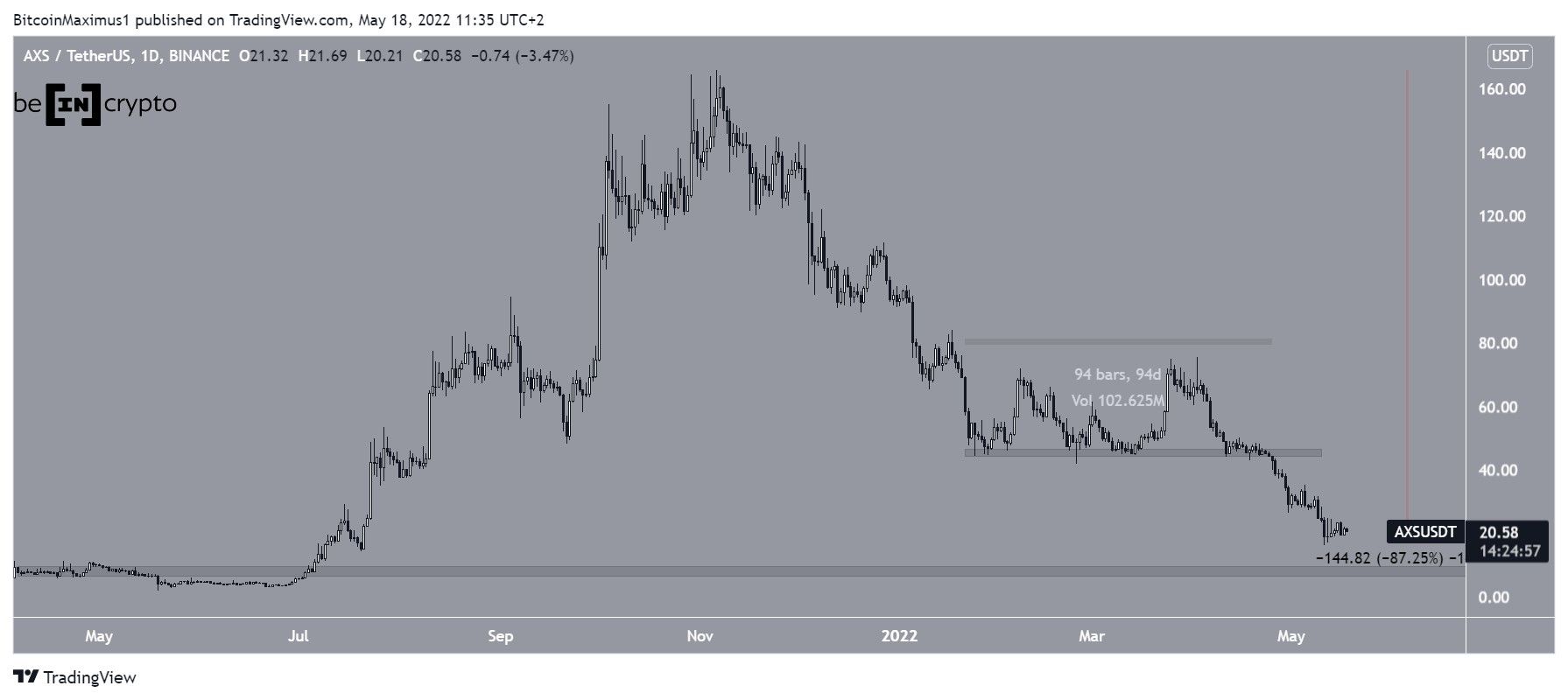 SponsoredThe ongoing downward movement has so far led to a low of $16.20 on May 11. Measuring from the all-time high, AXS has fallen by 87%.