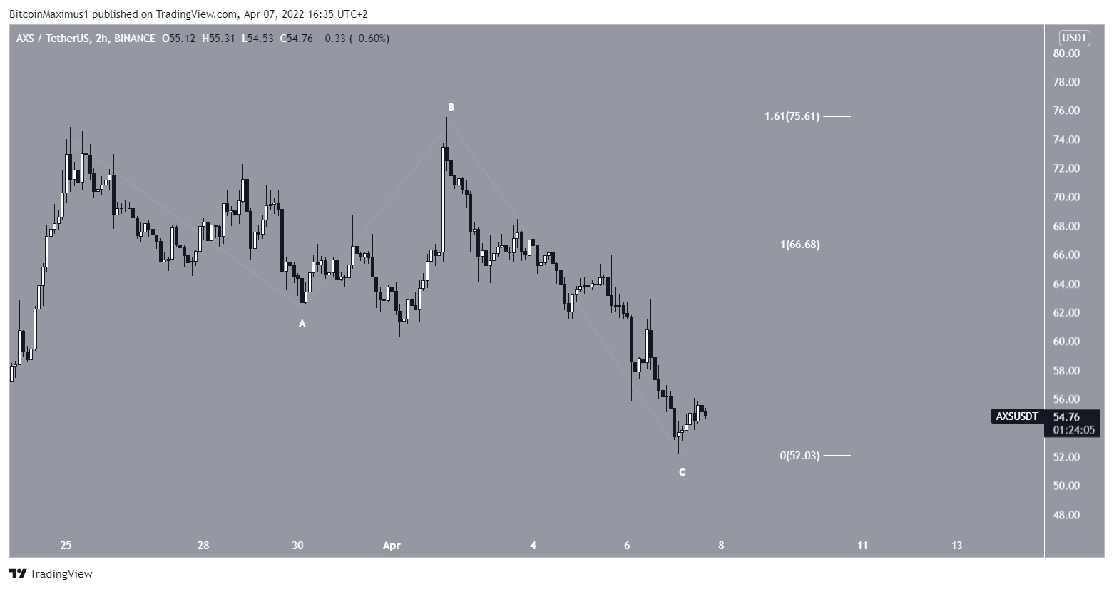 AXS has been falling underneath a descending resistance line since reaching an all-time high price of $166 on Nov. 6. So far, the downward movement has led to a low of $41.9 on Feb. 24.Â