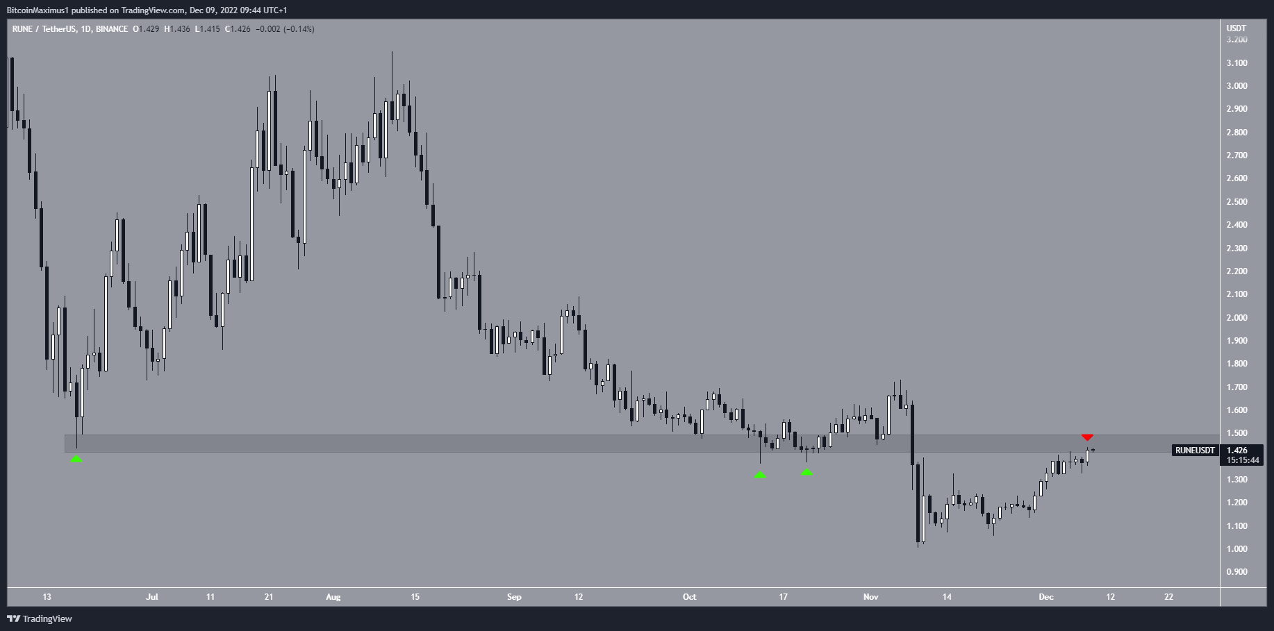 SponsoredAs a result, the trend is considered bearish until RUNE reclaims the $1.45 resistance area.