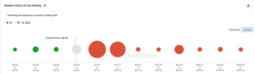 The Global In/Out of the Money data, which is an on-chain representation of Axie Infinity holders’s historical buying trends, also confirms this. It shows that the $7 territory could pose a significant obstacle to the ongoing price recovery.