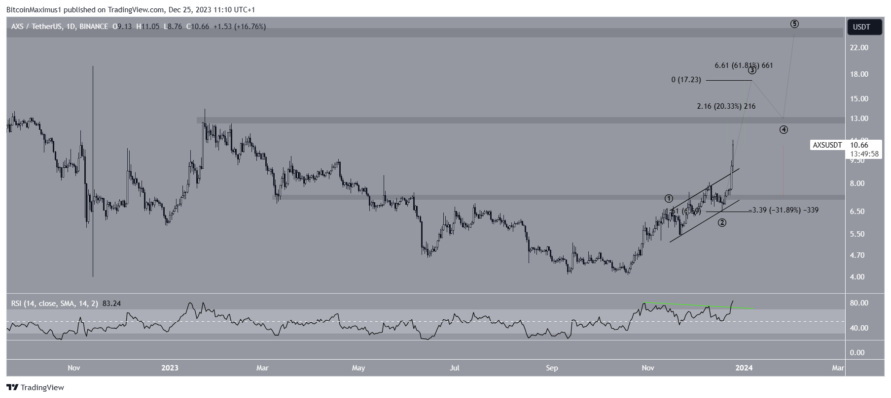The increase since the breakout has been swift, causing a reclaim of an important horizontal resistance area. The AXS price reached a new yearly high of $11.05 today. Since November 2023, AXS has increased by nearly 160%.