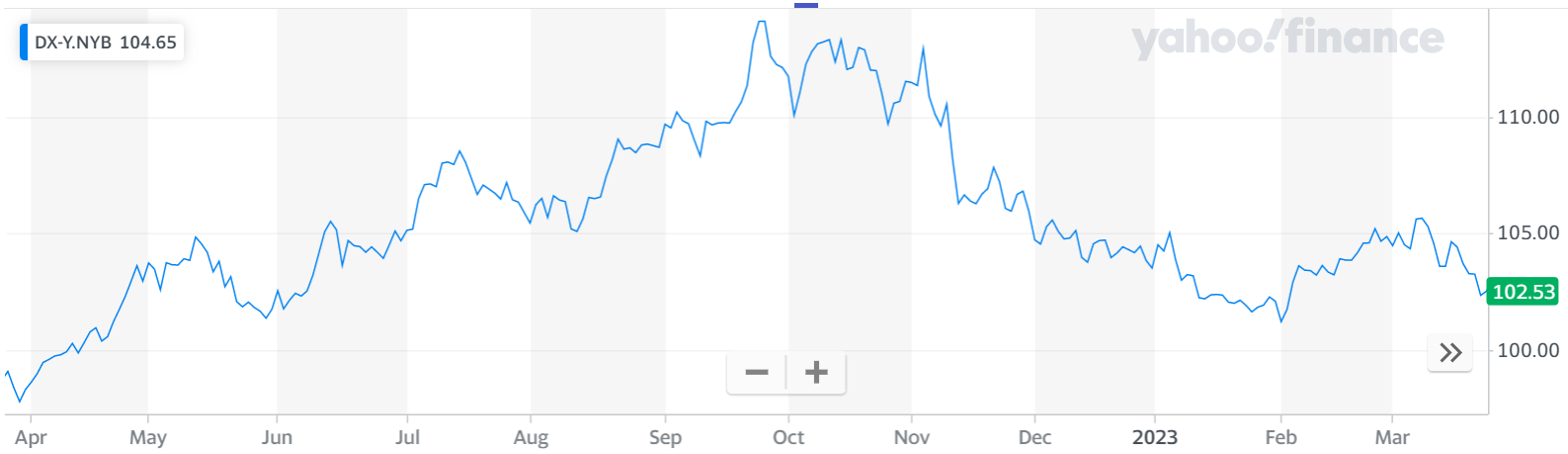 The USDX measures the value of the USD relative to a basket of other major fiat currencies, and its decline over the past 6 months suggests that the dollar is losing value. This decline is due to the fear of recession due to the Fed’s interest rate hike and the recent collapse of major U.S. banks.