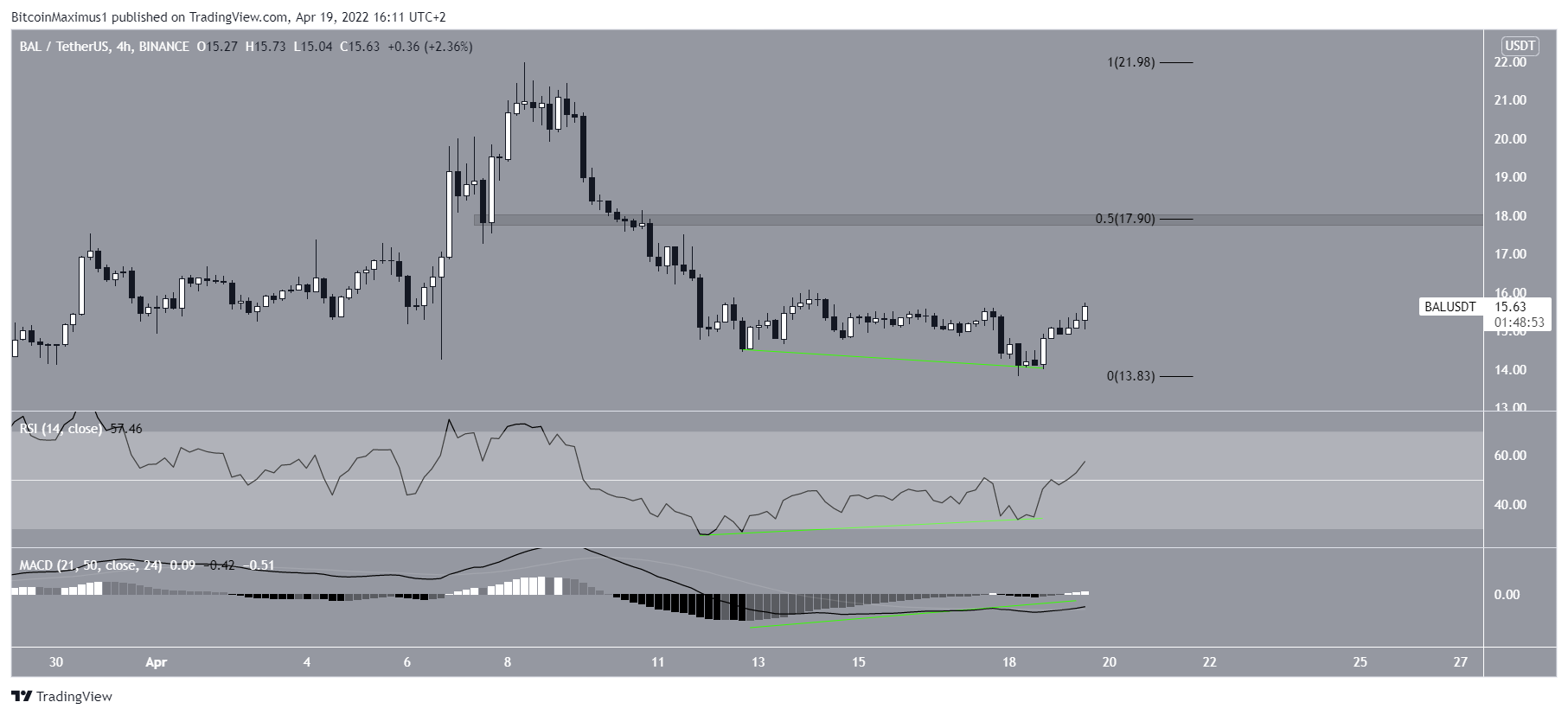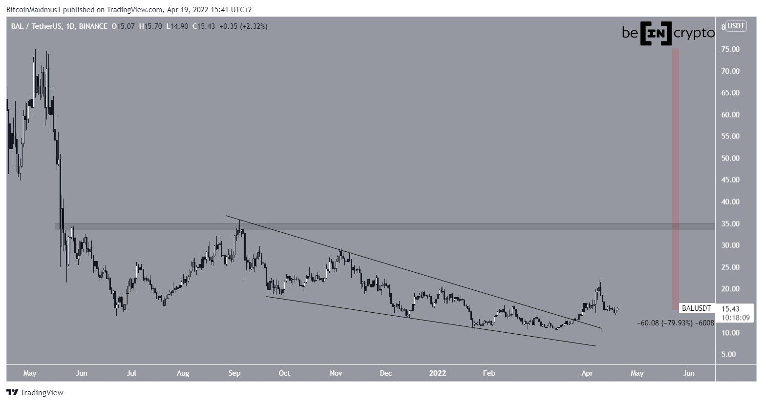 Cryptocurrency trader @TheEuroSniper tweeted a chart of BAL, stating that the price could increase all the way to $16.80.