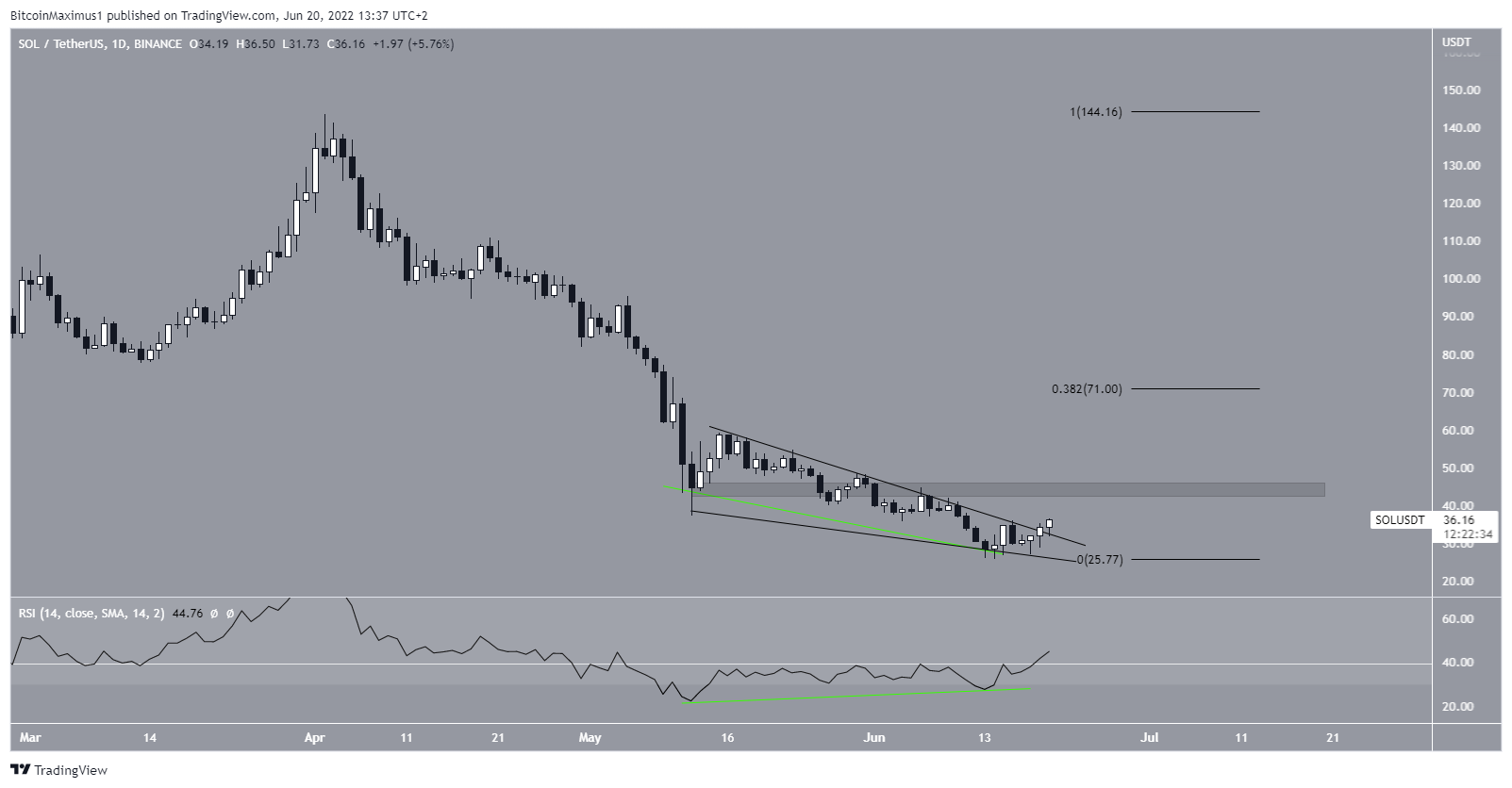 Solana (SOL) had been decreasing inside a descending wedge since May 12. The descending wedge is considered a bullish pattern, meaning that it is expected to lead to breakouts the majority of the time.Â