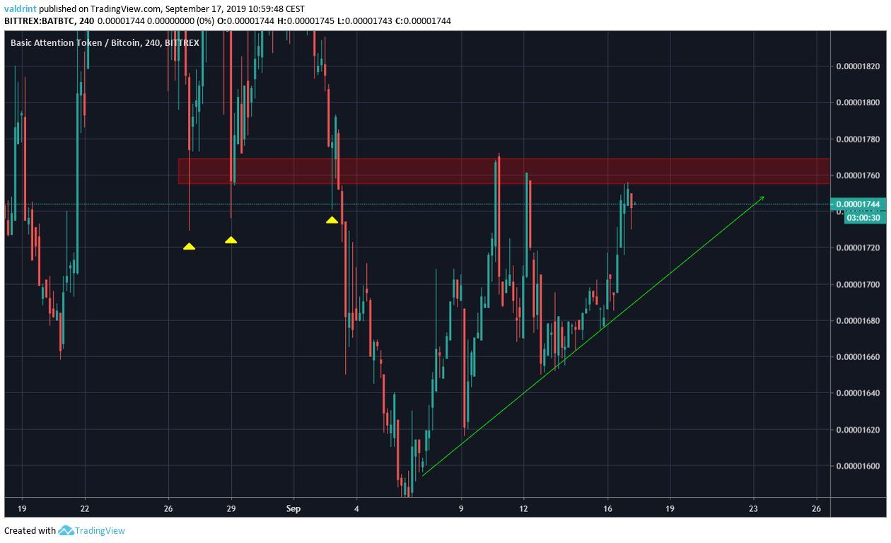 On September 6, 2019, the Basic Attention Token price reached a low of 1572 satoshis. An upward move followed. BAT reached a high of 1772 satoshis on September 10. After a brief decrease, it reached similar levels on September 12 and 17.