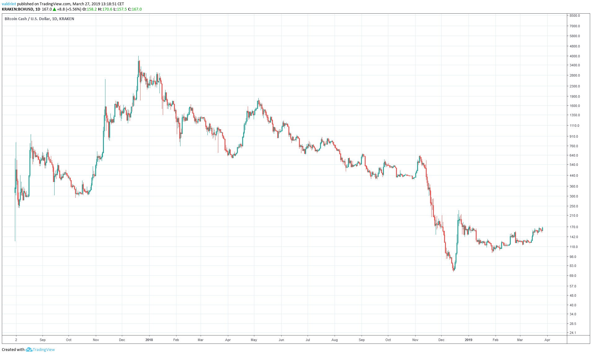 At the time of writing on Mar 27, 2019, BCH was trading around $170.
