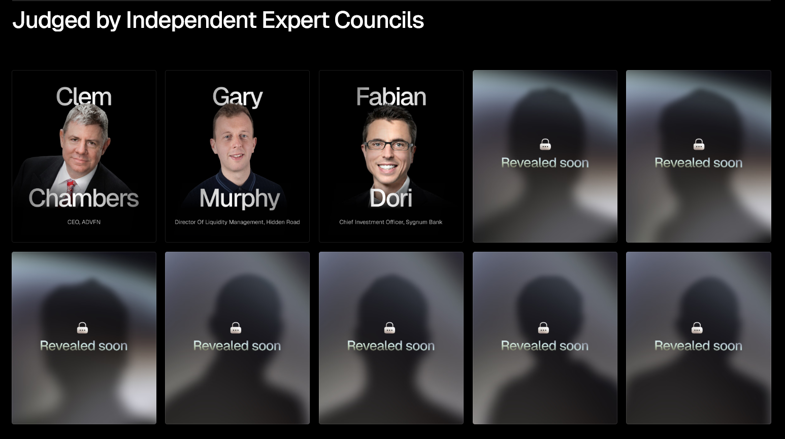 Expert Council Adjudication: A panel of industry specialists from the BeInCrypto Expert Councils reviews each candidate. These professionals bring direct experience in institutional infrastructure, compliance, and market structure.