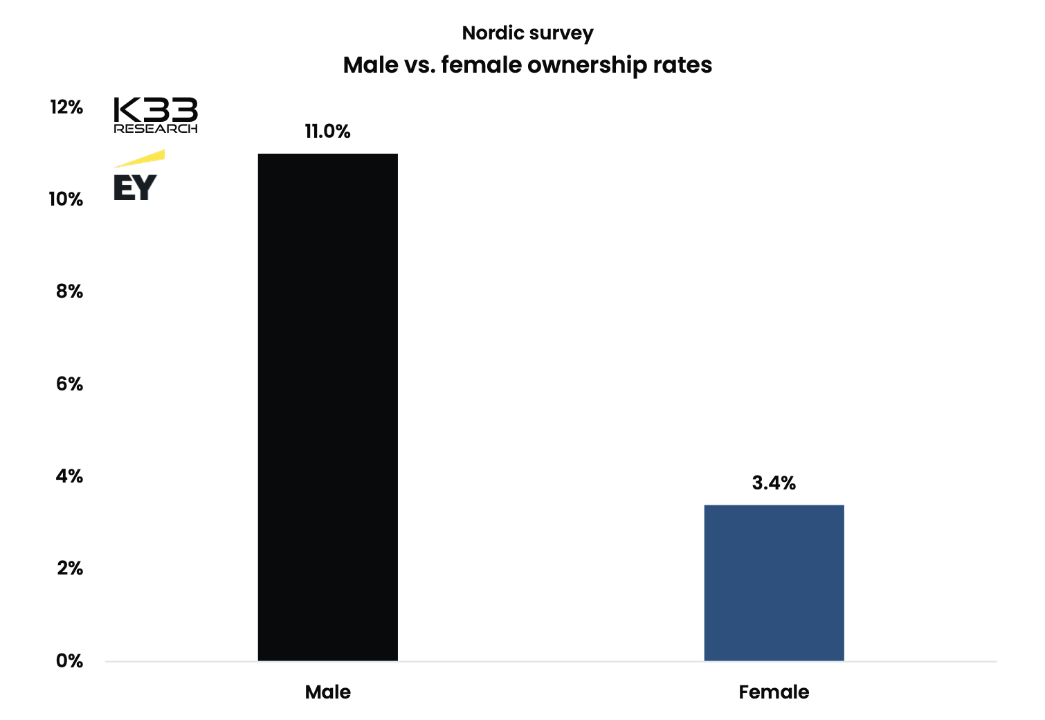 The gender gap is also significant, with men three times more likely to own cryptocurrency than women. Currently, 11% of Nordic men own crypto, compared to just 3% of women. This mirrors broader investment patterns, such as in the United States, where men generally exhibit higher investment rates across various asset classes.