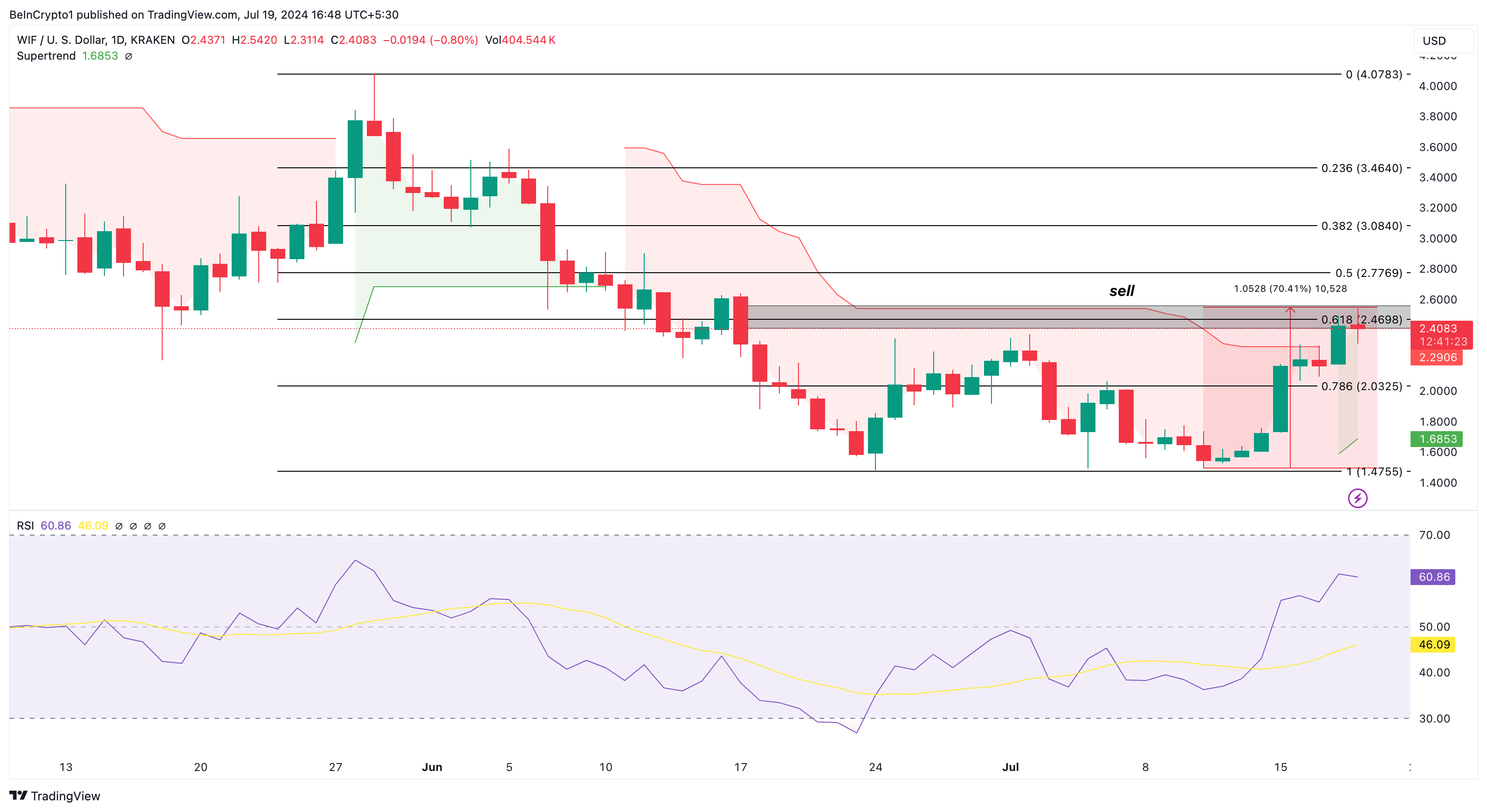 Currently, WIF is at a crucial point, especially as it has surpassed the sell signal displayed by the Supertrend. Should the token break past the resistance around $2.46, it may reach $2.77 or as high as $3.08.
