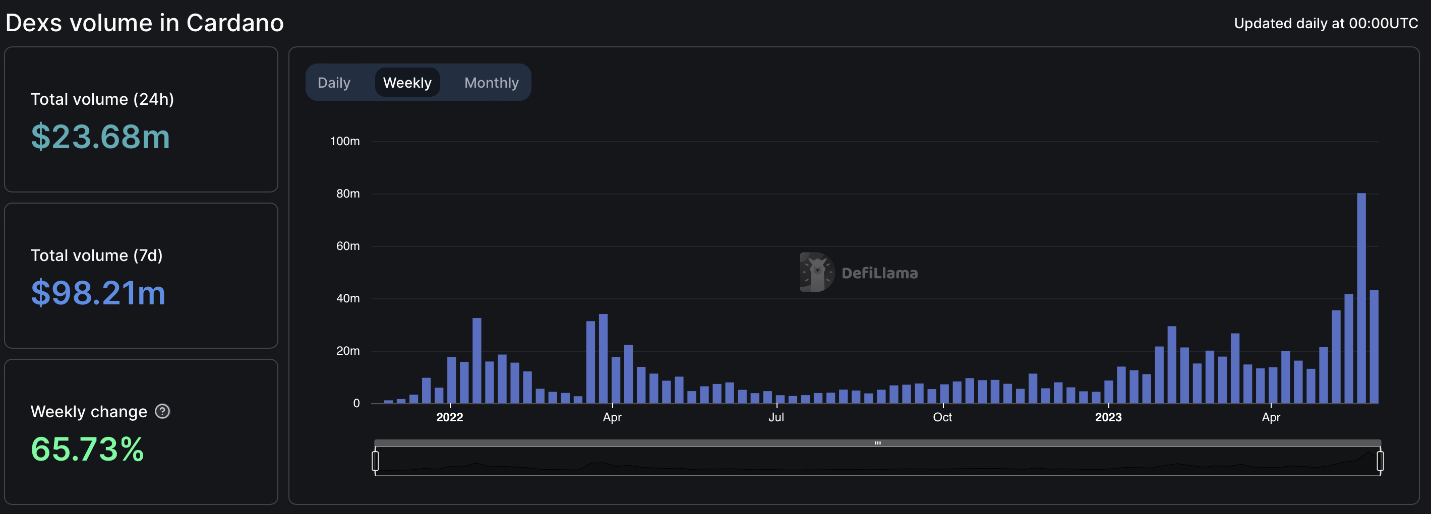 Decentralized exchange Minswap recently drove Cardano’s DEX volume to $98 million through the exchange’s 75.63% increase in weekly trading activity.