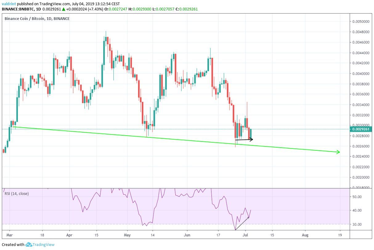 Once the BNB price reached this area, it immediately bounced upward, creating a long lower wick.