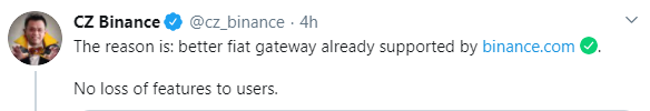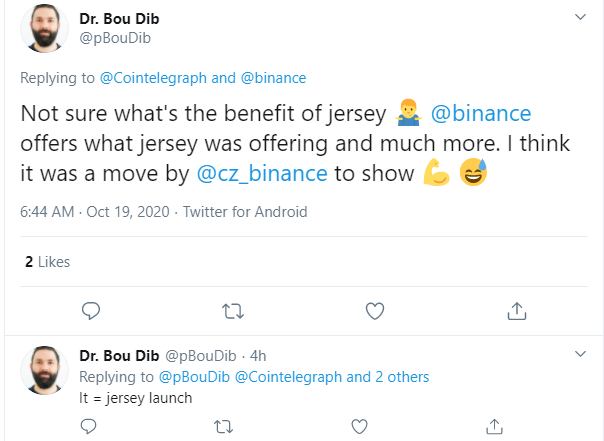 One Binance Jersey user confronted CZ on Twitter, saying it would have been nice to find out about the closure from the company itself and not social media. The user asked if his assets were being transferred directly to Binance, adding the request, “without fees please.” CZ has seemingly been keeping the cards close to the vest on this one but did suggest that “emails probably went out,” adding that he’s not in charge of that particular exchange.