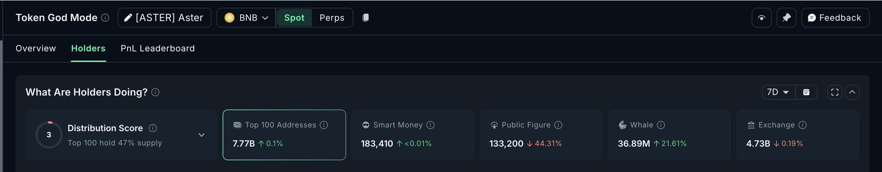 Despite renewed criticism around Binance after the late-January market crash, Aster has quietly attracted large buyers. Over the past seven days, whale holdings have increased by around 21.61%, even as “public figure” wallets reduced exposure. This suggests that while visible influencers stepped back amid criticism, larger private holders were accumulating. That divergence points to growing confidence among large investors.