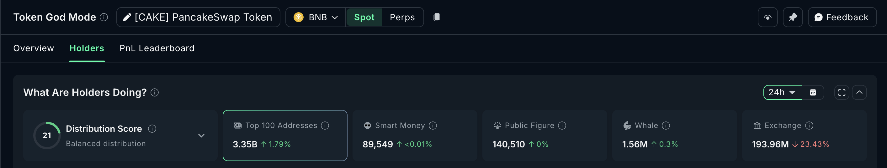 On-chain data also points to steady accumulation. Over the past 24 hours, the top 100 addresses increased their holdings by about 1.79%, while exchange balances fell by nearly 23.4%. This suggests both whales and possibly retail investors are quietly positioning in CAKE.