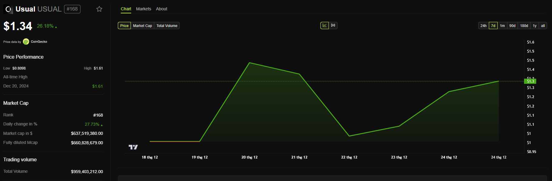 BeInCrypto data shows that the price of USUAL has increased by 26% following the news, currently trading around $1.3.