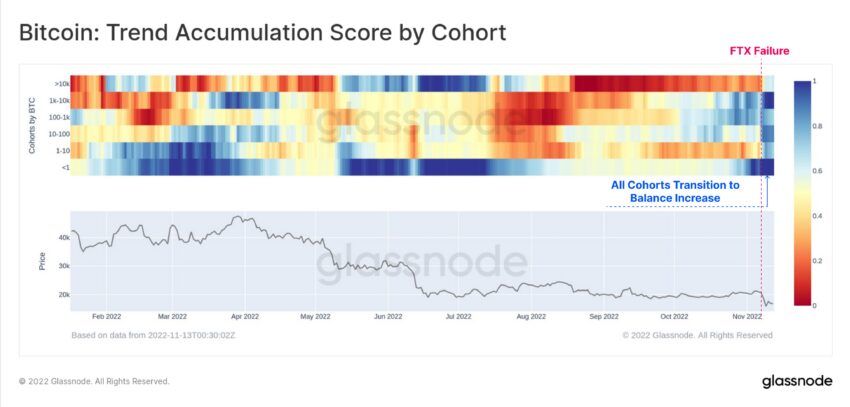 The failure of FTX has resulted in positive balance changes across all wallet groups. From shrimps to whales, there has been a very distinct change in Bitcoin holder behavior.
