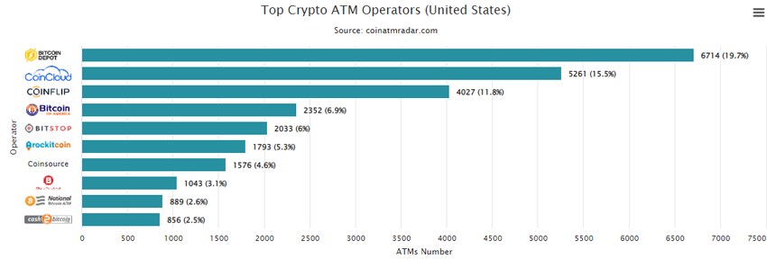 The U.S. remains one of the healthiest markets for Bitcoin ATMs as home to 87% of all kiosks in the world.
