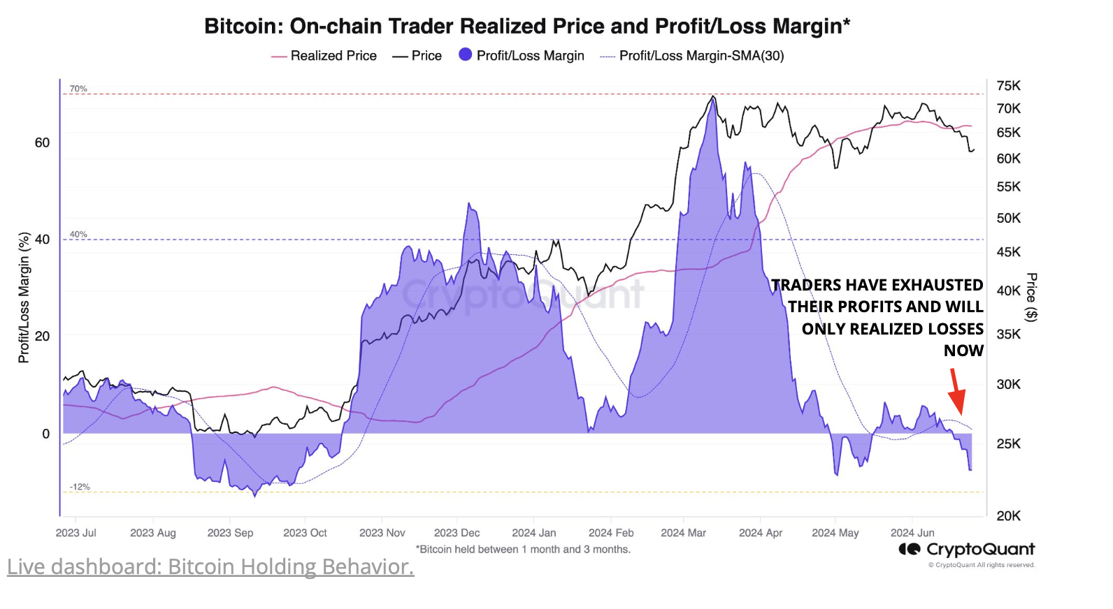 “Since mid-June, the spot price has plunged below the cost basis of both the 1-week to 1-month-old holders ($68,500) and 1-month to 3-month-old holders ($66,400). If this structure persists, it has historically resulted in a deterioration of investor confidence and risks this correction being deeper and taking longer to recover from,” Glassnode said.