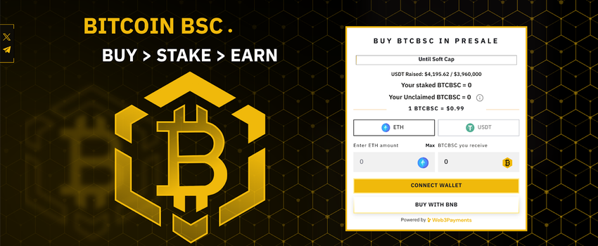 Bitcoin BSC has today launched its $BTCBSC token presale, allowing investors to buy a low-fee Bitcoin alternative at just $0.99. The project is built on the Binance Smart Chain to facilitate scalable, secure, and eco-friendly transacting.