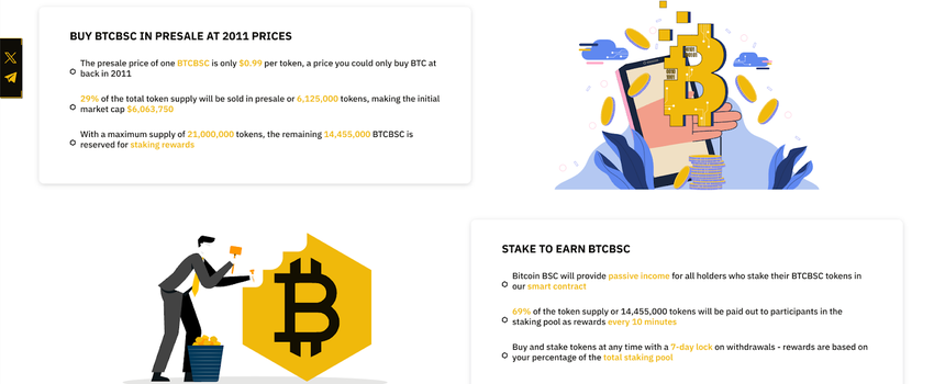 It has the same total supply as Bitcoin and a presale price of just $0.99. As such, Bitcoin BSC provides a way for investors to buy a scalable Bitcoin at its infamous 2011 price.