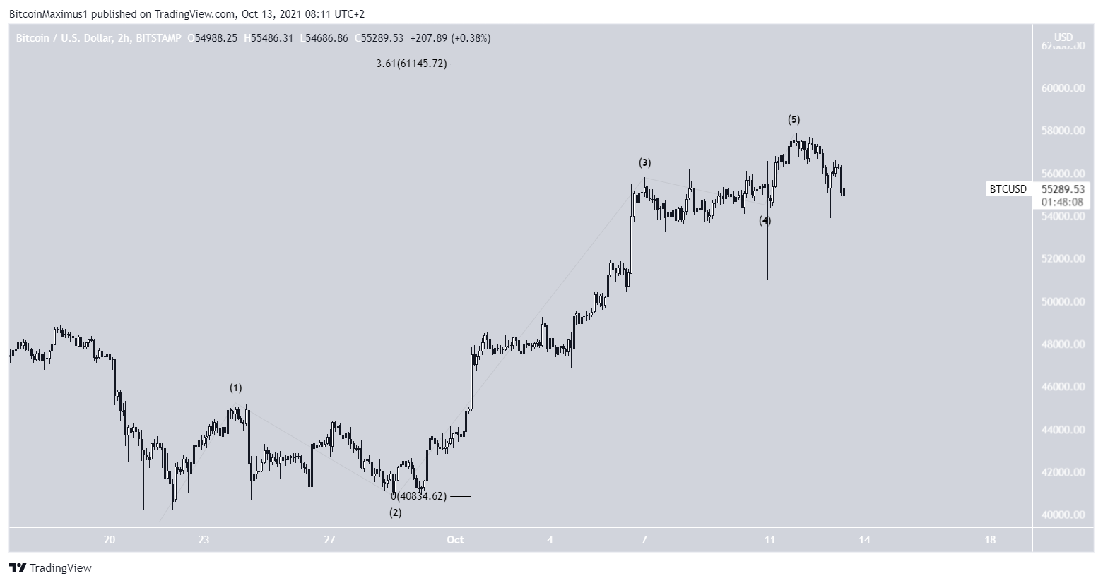 The upward movement for bitcoin came to a temporary halt on Oct 12, causing a sharp fall to the $55,000 level. BTC has bounced back some since but is rapidly approaching the top of its upward move if it hasn’t done so already.