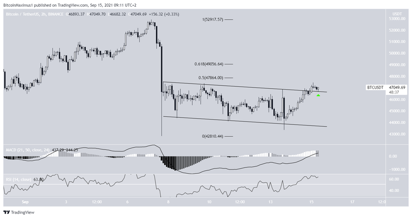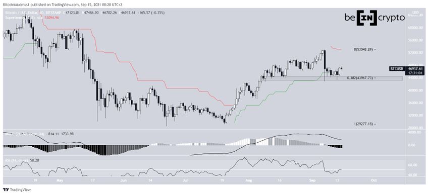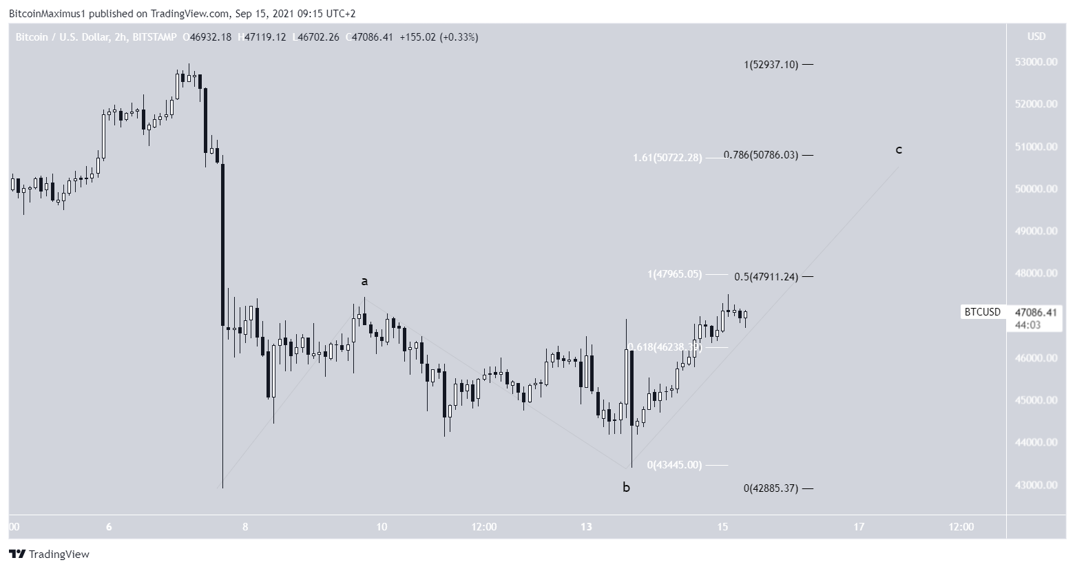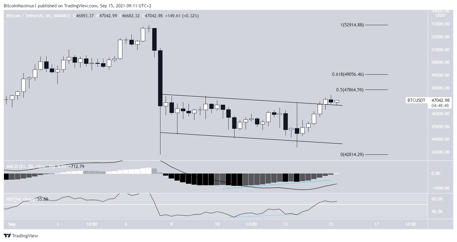 After reaching a low of $43,400 on Sept 13, BTC has rebounded considerably. The next day, it created a bullish engulfing candlestick and reached a high of $47,250. In addition to this, it’s trading above the $43,950 horizontal support area, which is the 0.382 Fib retracement support level.Â