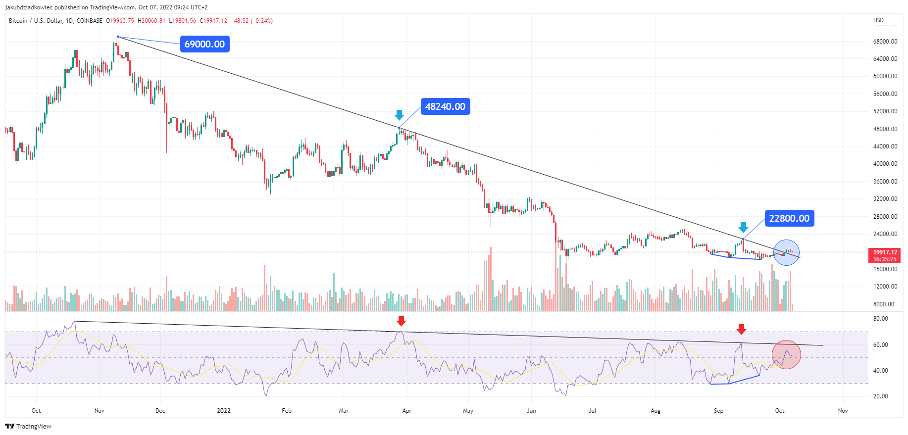 This week, however, BTC finally managed to break above this descending line of resistance, while regaining the $20,000 level (blue circle).