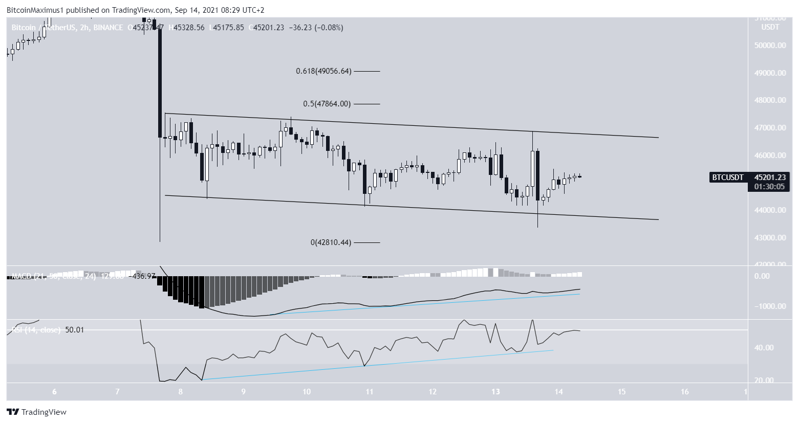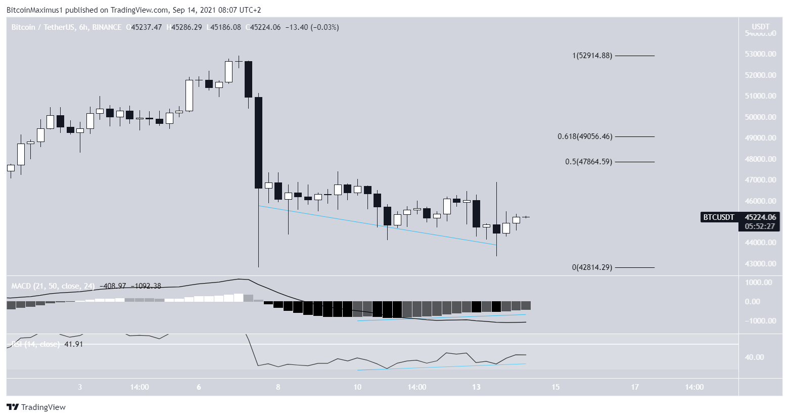 BTC decreased considerably yesterday, reaching a low of $43,400. However, it created a long lower wick and bounced back, reaching a close near $45,000.Â