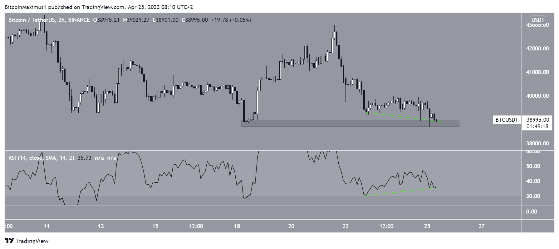 SponsoredSimilar to the daily time frame, the two-hour chart shows a growing bullish divergence in the RSI (green lines). Besides that, there are no other bullish signs in place.