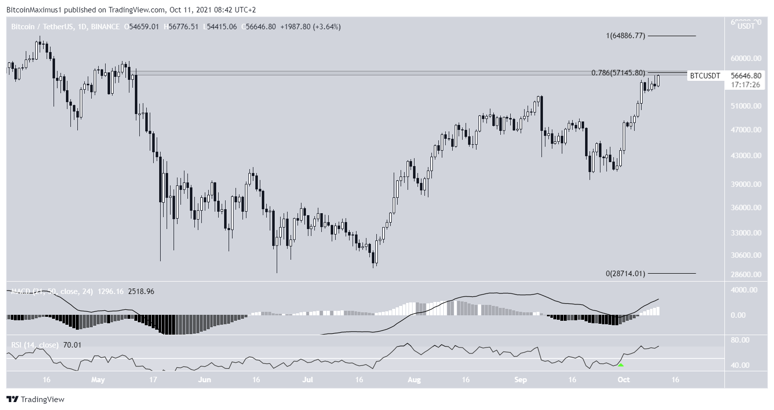 Furthermore, BTC is approaching the $57,150 resistance. This is both the 0.786 Fib retracement level and a horizontal resistance area.
