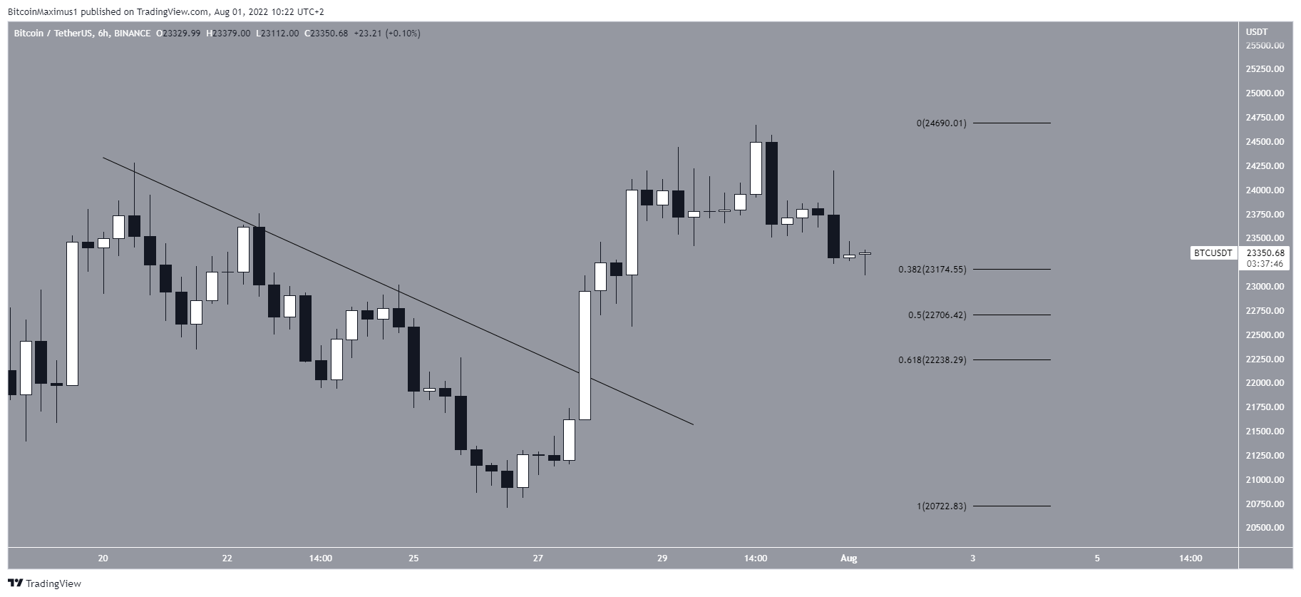 BTC has been falling since reaching an all-time high price of $69,000 in Nov. The downward movement has so far led to a low of $17,622 in June. Bitcoin has been moving upwards since and so far has reached a high of $24,668.Â