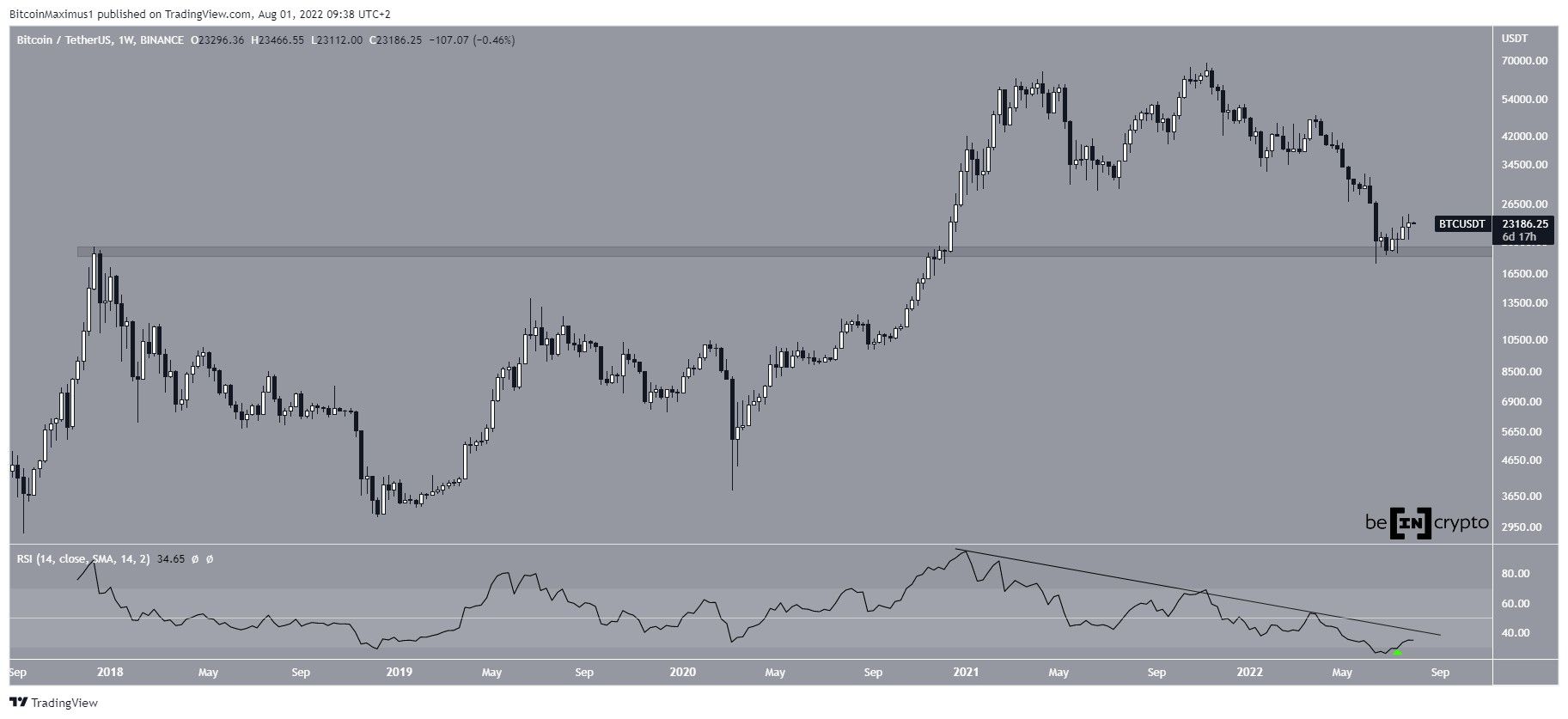 SponsoredThe weekly RSI provides a bullish outlook, since the indicator has moved outside its oversold region (green icon) and is currently at 36. However, it is still following its same bearish divergence trend line that has been in place since the all-time high. Its breakout is necessary in order for the bullish reversal to be confirmed.