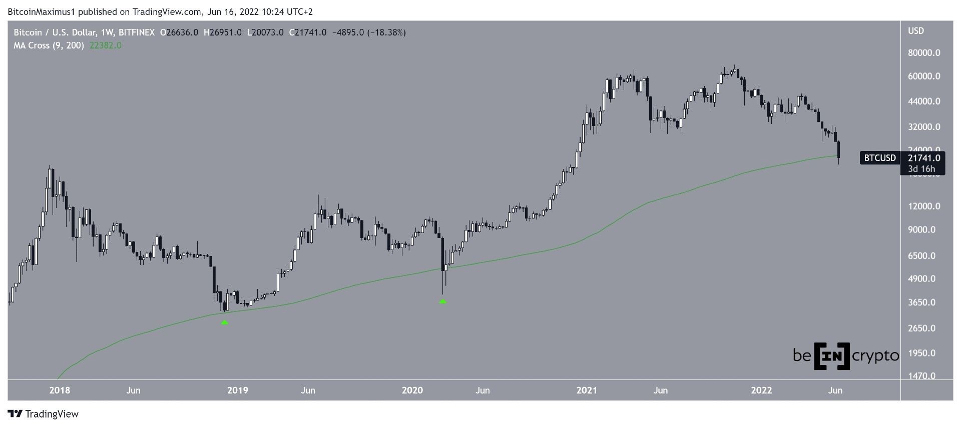 SponsoredAn important development is the fact that the price has reached its 200-week moving average (MA). The MA was also reached in Dec 2018 and March 2020. Both these levels marked absolute bottoms after which a significant upward movement followed.Â