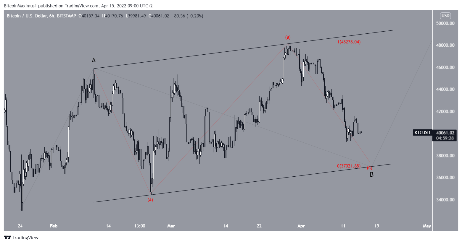 However, BTC is still correcting in what seems to be an A-B-C structure (red). So, a potential target for the bottom of this movement is found near $37,000. This would give waves A and C a 1:1 ratio and would coincide with the support line of an ascending parallel channel.
