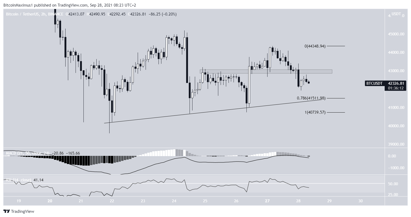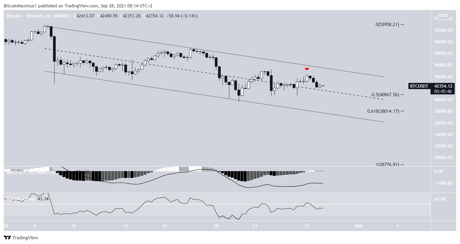 Bitcoin (BTC) attempted to move upwards on Sept 27 but was rejected by the $44,000 resistance area.