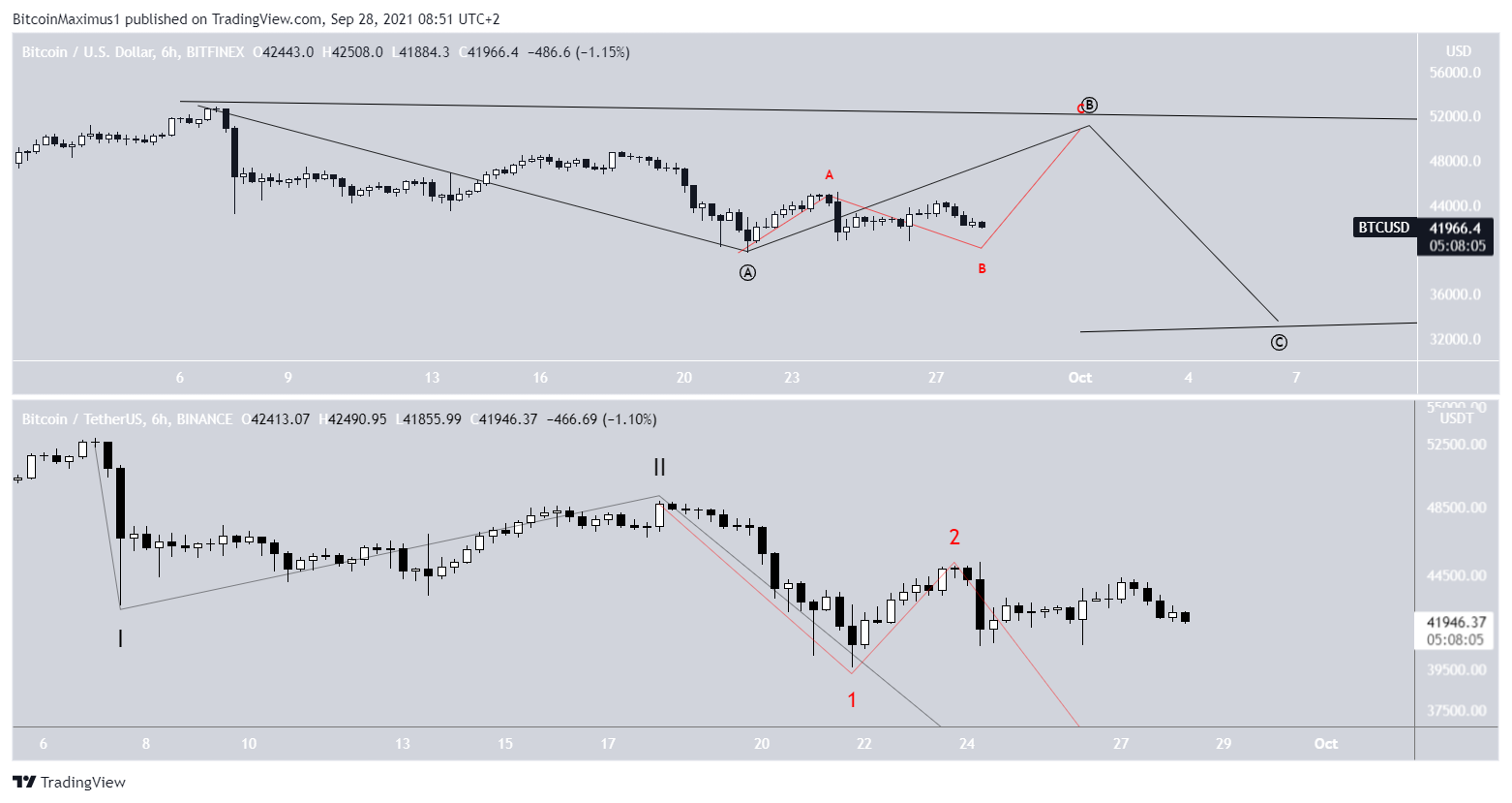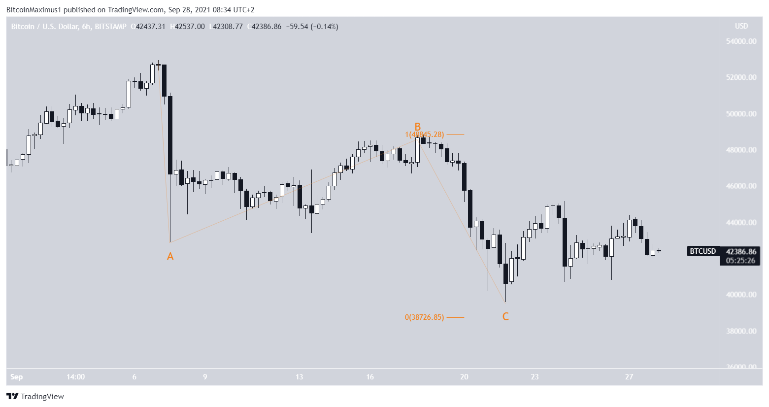 On Sept 27, BTC made an attempt at moving above the $44,000 area but was promptly rejected (red icon). The area had acted as support in August and the beginning of September but turned to resistance after the breakdown on Sept 20. The rejection created an upper wick and a bearish candlestick.