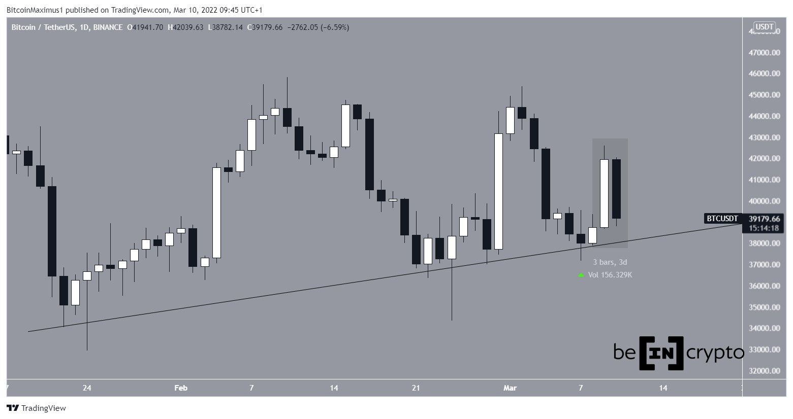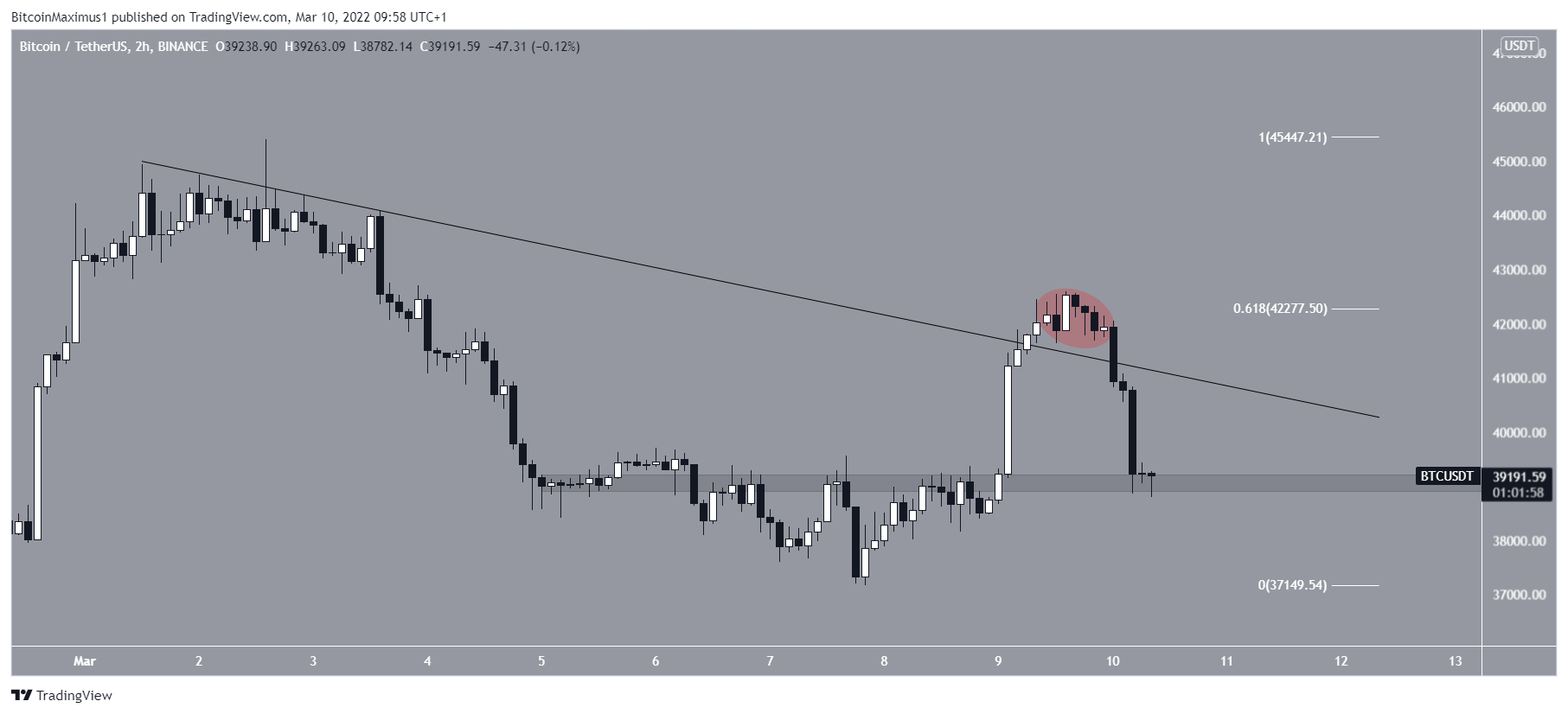 Bitcoin (BTC) failed to sustain the upward move that pushed it over $42,000 and initiated a bearish trend reversal on March 9.