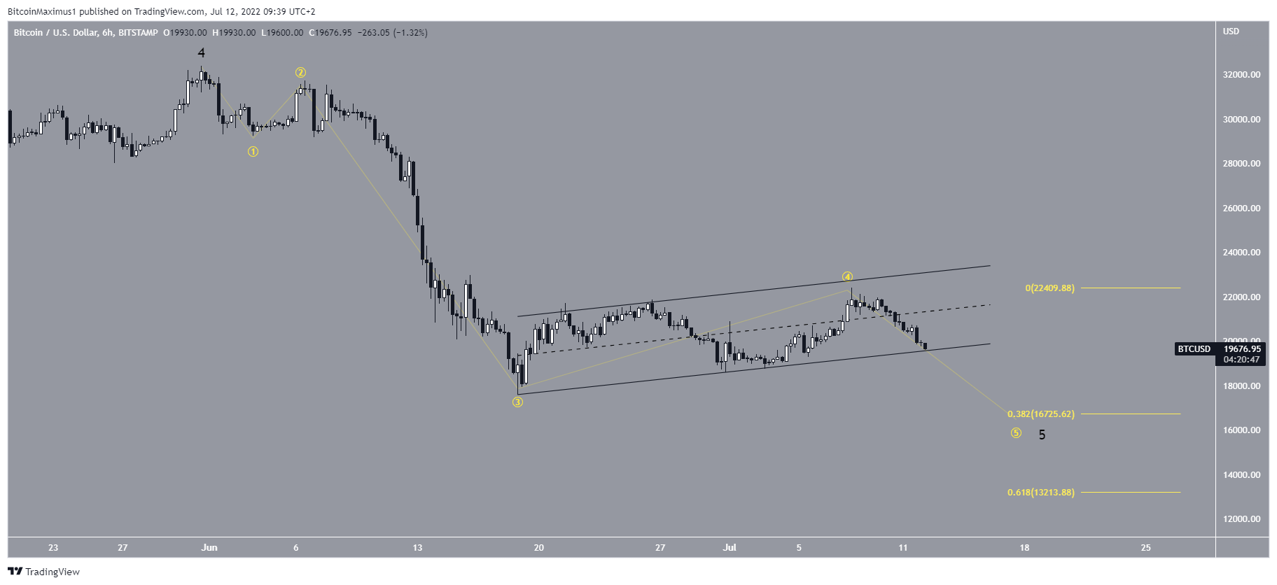 The six-hour chart shows that BTC has been trading inside an ascending parallel channel since June 19. Such channels usually contain corrective movements and likely means that the underlying trend is bearish.