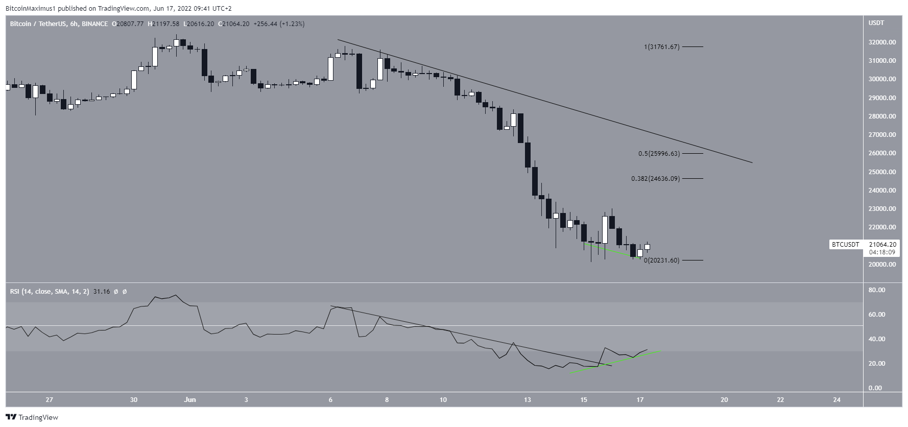 The six-hour chart provides a slightly more bullish outlook. The two main reasons for this are the creation of a double bottom pattern and the movement of the RSI.