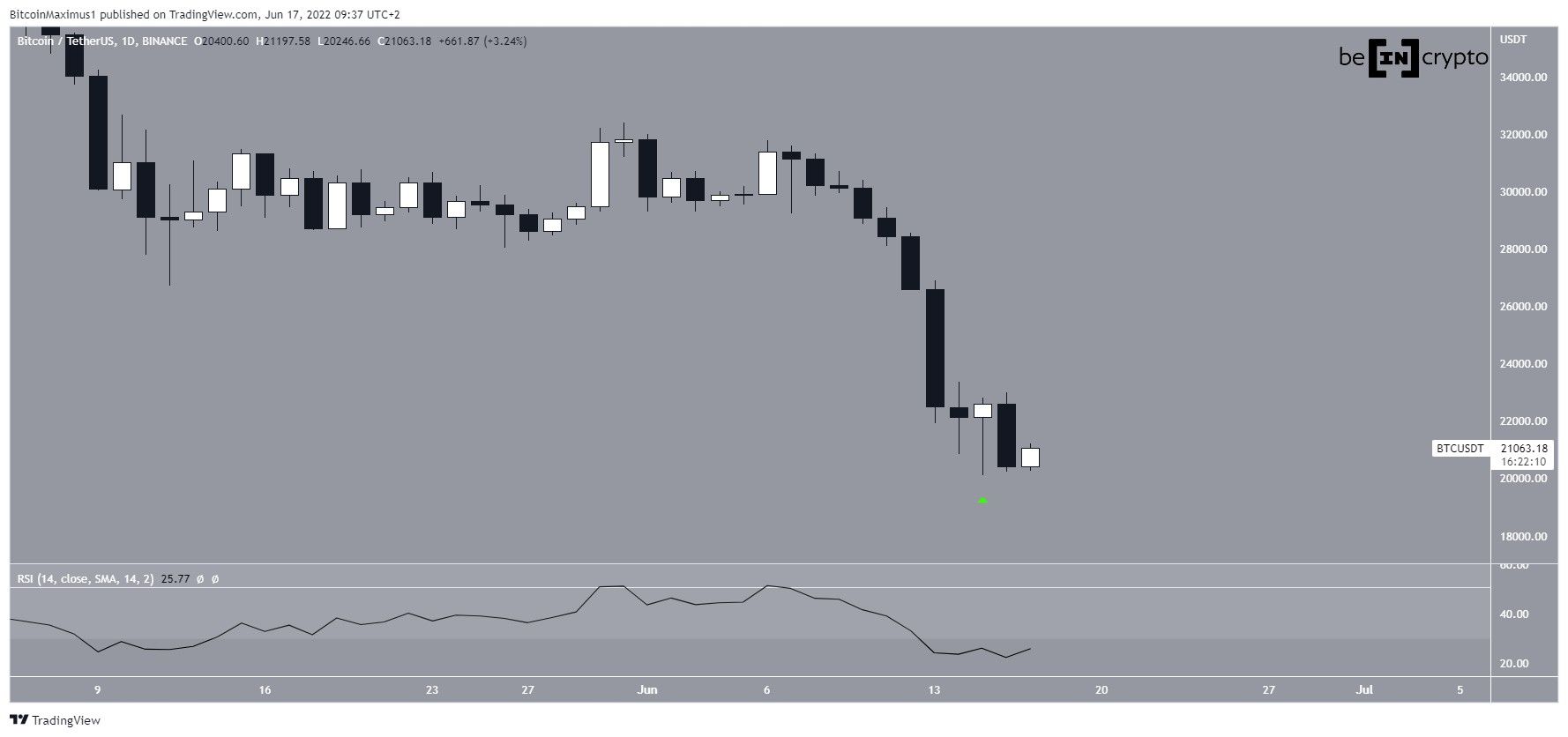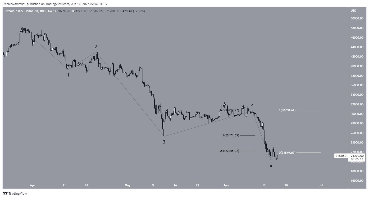 The short-term wave count shows that it is possible that BTC has completed a five-wave downward movement (black). The decrease began in the end of April.
