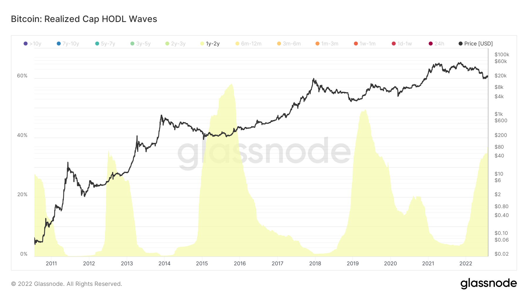 SponsoredFor example, if the HODL waveband of one to two years has a width of 15%, it means that 15% of the total BTC in circulation has previously moved between one and two years ago.