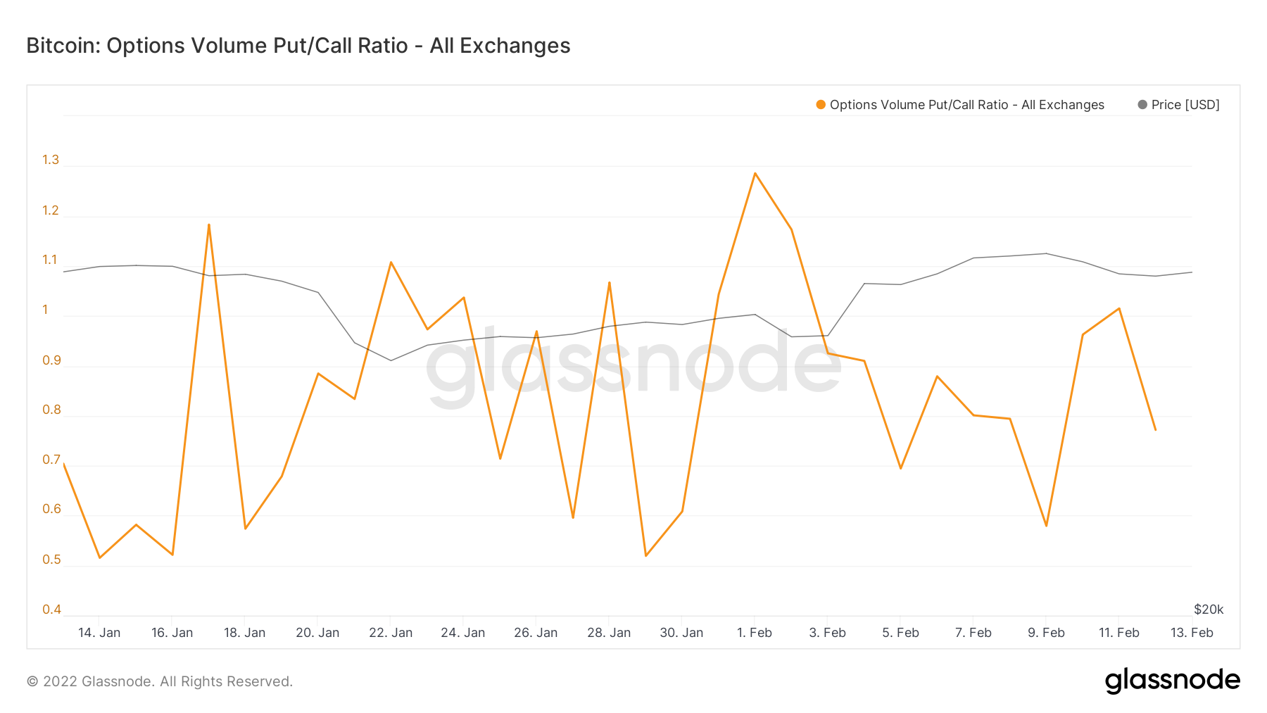 An interesting observation is the fact that the put/call ratio peaked at 1.28 on Feb 1. This supports the previous observation that the short squeeze of Feb 3-4 was caused by a considerable number of traders choosing to bet contrary to the market and then the price moving against to them.