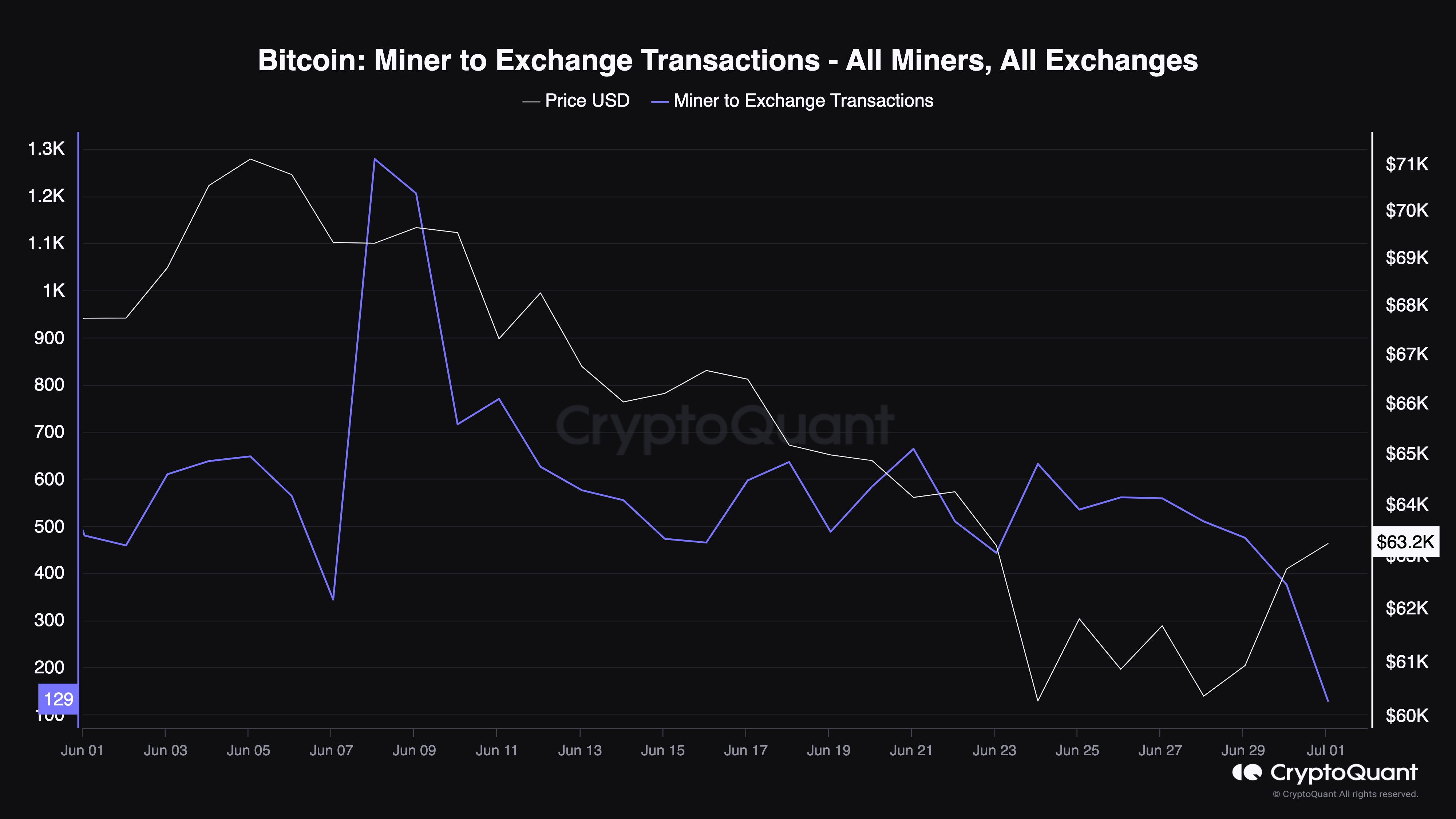 SponsoredAfterward, revenue dropped as they found it challenging to keep up with operating costs. Consequently, they sold some of their BTC. According to CryptoQuant, Miner-to-Exchange Transactions jumped up until June 8.