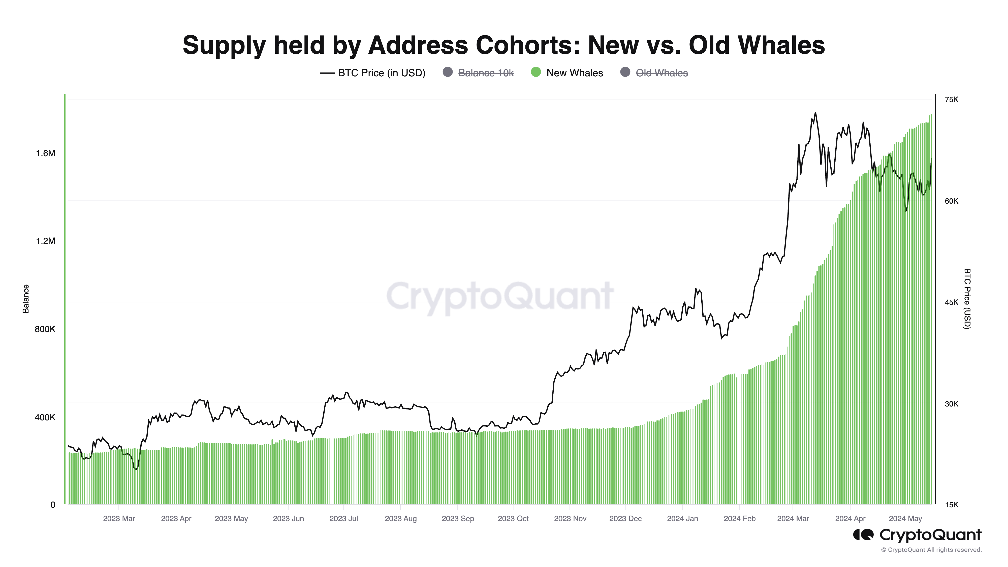 - Conditional Support at $60,000: Bitcoin has strong conditional support at the $60,000 level. This support is primarily due to new whales, who have been consistently accumulating Bitcoin at this price point, reinforcing it as a significant threshold.