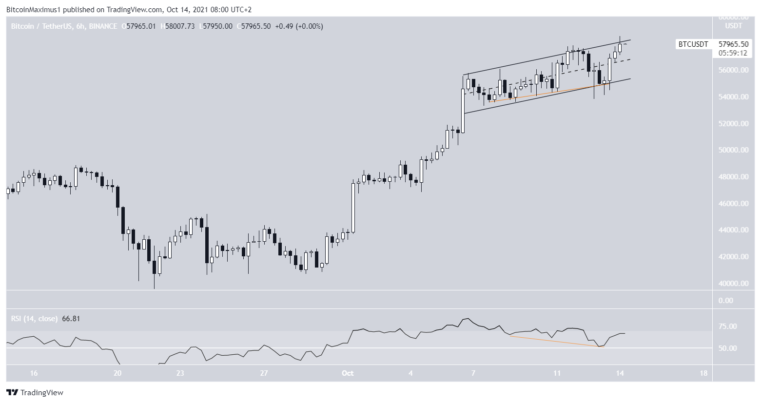 The six-hour chart shows that BTC is in the process of breaking out from an ascending parallel channel.