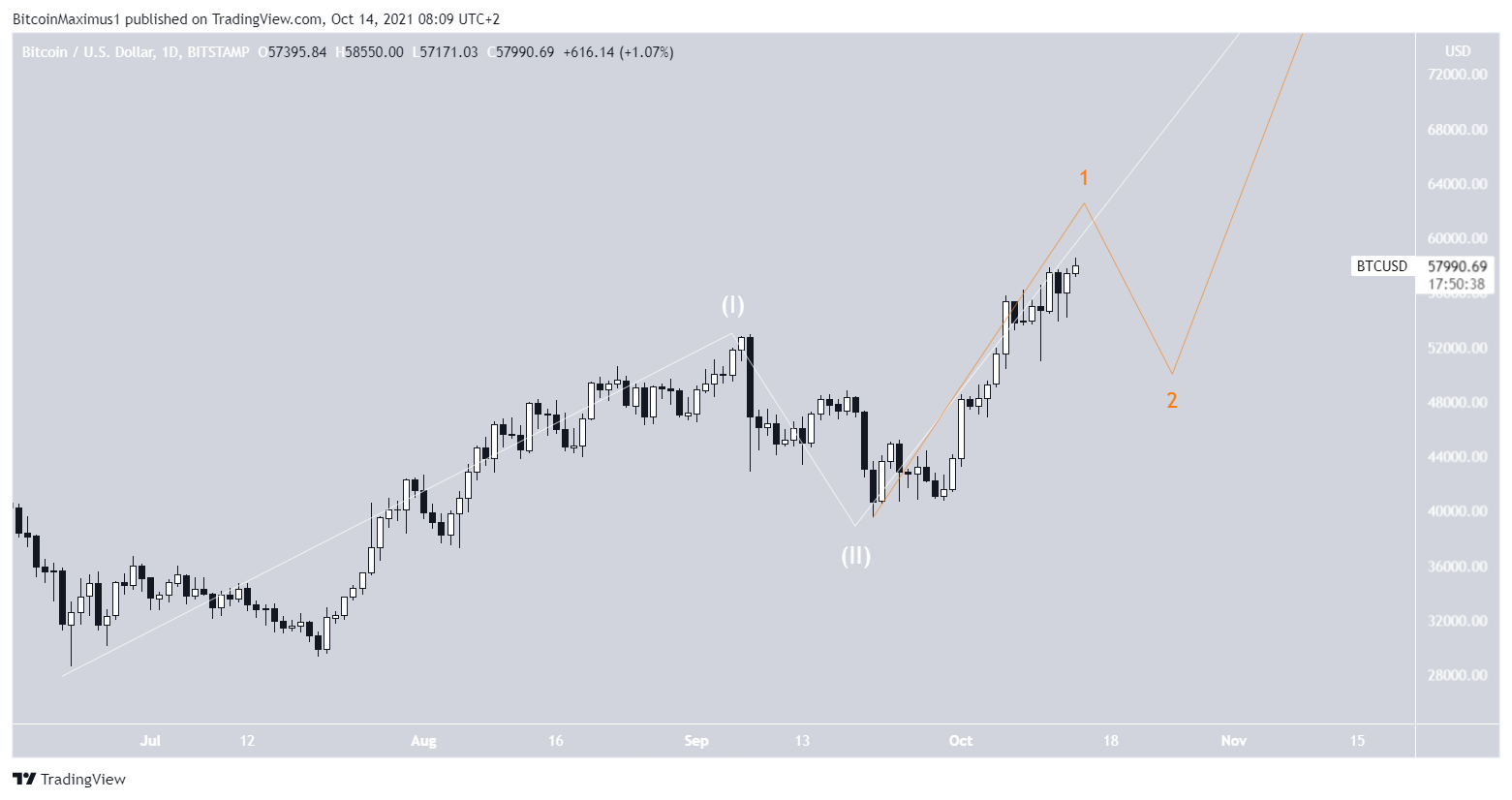 The long-term wave count shows that BTC is in a 1-2/1-2 wave formation. This suggests that the increase is expected to accelerate as soon as the correction is complete.