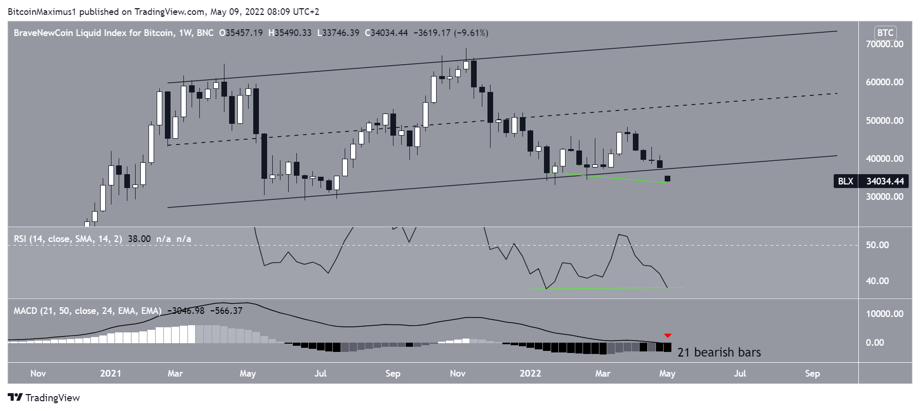 Bitcoin (BTC) has been falling at an accelerated rate since May 4 and is in the process of breaking down from a long-term structure.