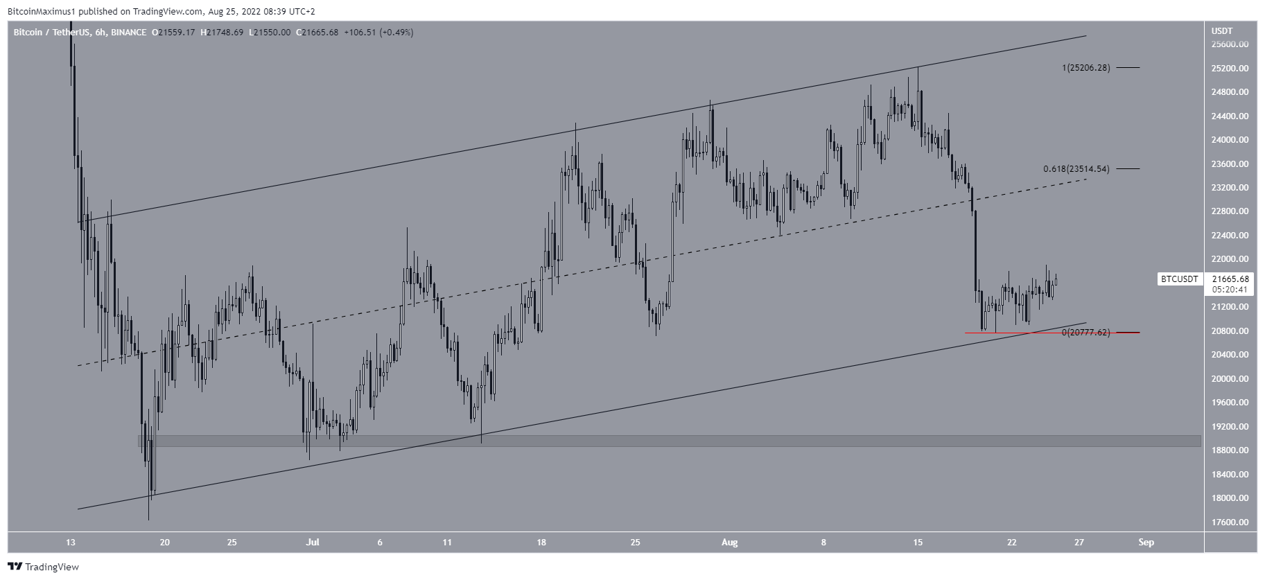 The six-hour chart shows that BTC has been trading inside an ascending parallel channel since the aforementioned June lows. Such channels usually contain corrective patterns, meaning that an eventual breakdown from it would be expected.