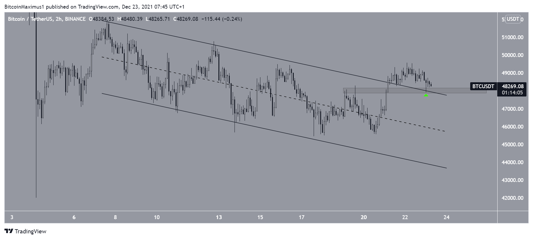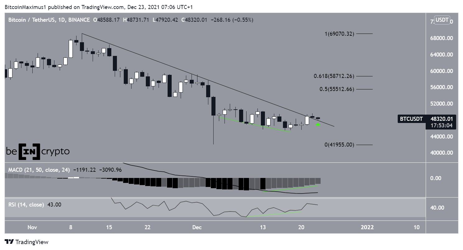 BTC had been decreasing underneath a descending resistance line since reaching an all-time high price on Nov 10. The decrease continued until Dec 4, leading to a low of $42,000.Â